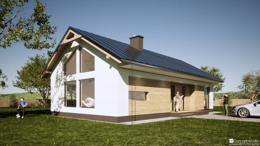 Rodzinka XL jest to projekt na pozwolenie, ponieważ ma 100m² i wystarczająco miejsca dla całej rodziny. Przytulny i Nowoczesny w bryle bardziej tradycyjnego domu dla tych, którzy cenią tradycję, jednocześnie są nowocześni i kochają minimalizm.